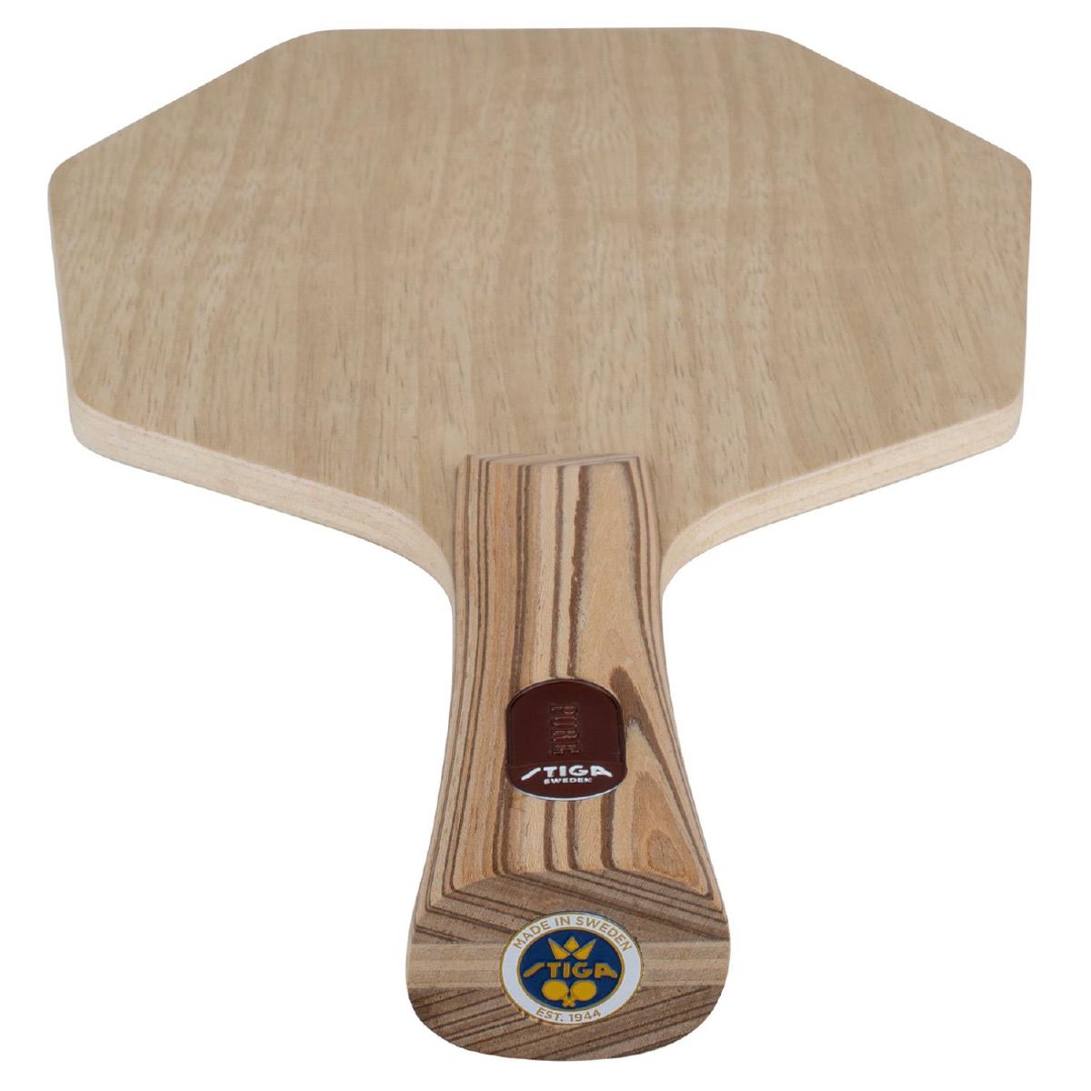 The STIGA Pure Cybershape is a stylish, minimalist table tennis blade with excellent playing characteristics. The Swedish brand STIGA has created an optimized hitting surface on the upper half of the blade with its patented Cybershape design. The Pure blade is specially designed for attacking players who value control and precision. With seven carefully selected layers of wood, this blade offers a perfect balance between power and feel. The STIGA Pure Cybershape impresses with its easy handling and excellent feel during play. The balanced weight distribution ensures precise shots in every situation. The larger sweet spot in the upper half of the blade ensures optimum accuracy and stability, making aggressive runs, fast smashes and controlled blocking balls effortless. STIGA has found the perfect sweet spot between speed and control - the ideal blade for your next match! Made in Eskilstuna, Sweden, the STIGA Pure combines decades of know-how with top-quality woodworking and unique craftsmanship. STIGA is committed to environmentally friendly production, focusing on waste reduction and recycling wood waste to create items such as key chains. Discover the feel of the STIGA Pure Cybershape and make it your new favorite blade! Order now and experience how this innovative Cybershape design takes your game to the next level. Specifications 7 layers of high-quality wood Made in Eskilstuna, Sweden Patented Cybershape design for optimized hitting surface Larger sweet spot for maximum precision