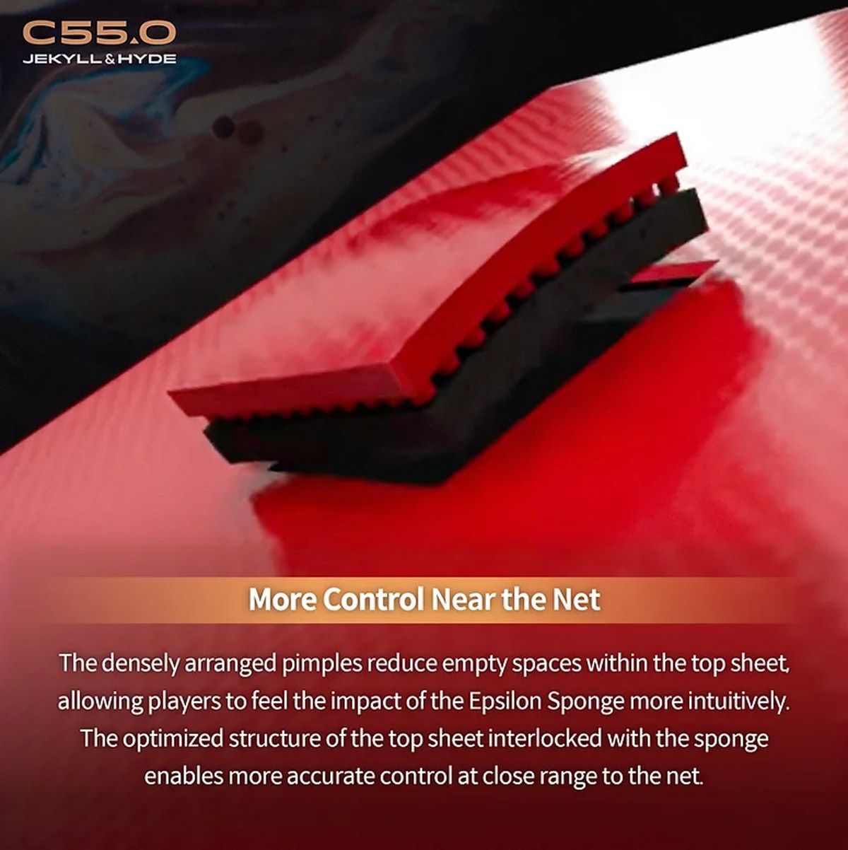 The grip of the surface is a key factor for maintaining top performance. After each training session, clean it with a rubber cleaner and cleaning sponge to preserve its tackiness. Always use a protective film afterwards to prevent dust and oxidation, ensuring maximum grip for your next match.