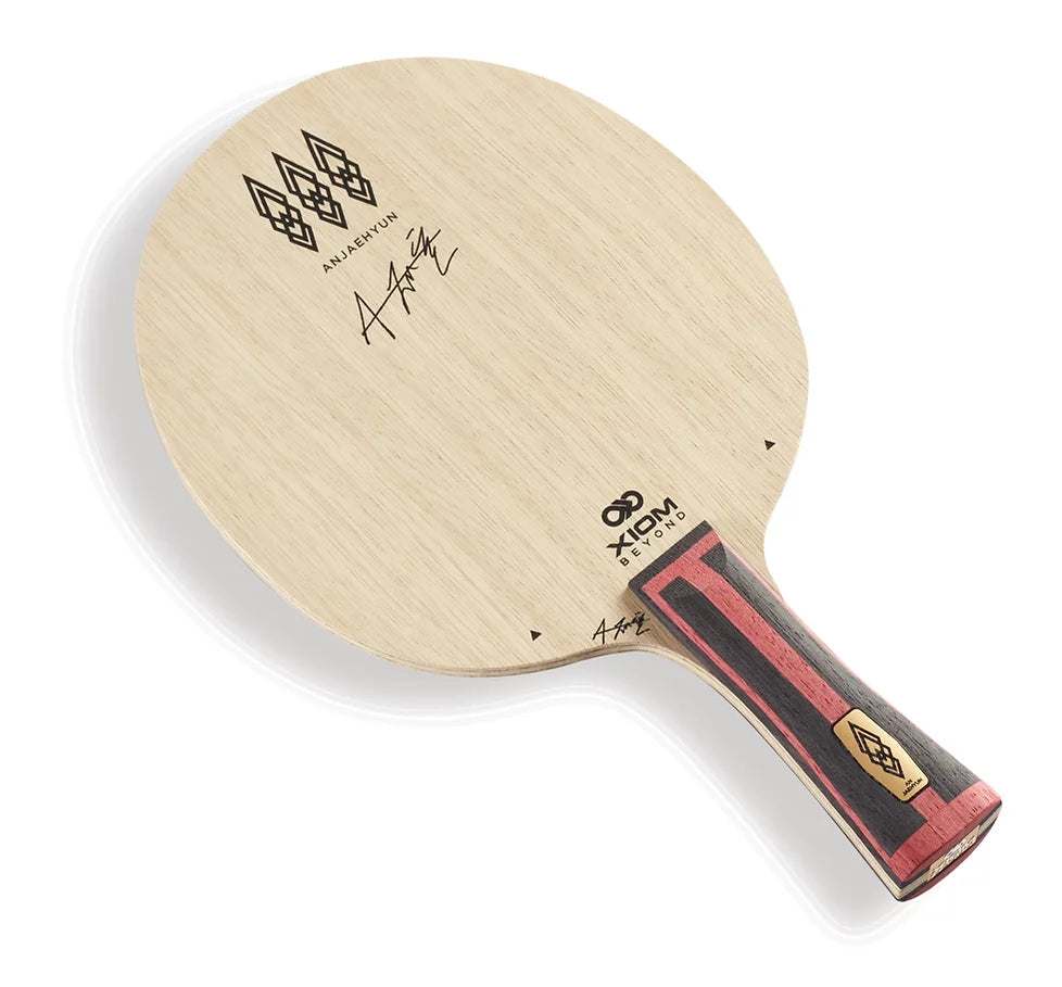 Dies ist ein Holz, das vom Xiom Holz-F&E-Team entwickelt wurde, um das nächste Generationen-Verbundmaterial 'TMX (TRIMETRIX)' nahe der Mitte des Holzes zu platzieren – für die sinnliche und kraftvolle Leistung, die An Jaehyun, Mitglied der Xiom Stars und Nationalspieler im Tischtennis aus Korea, wünscht.